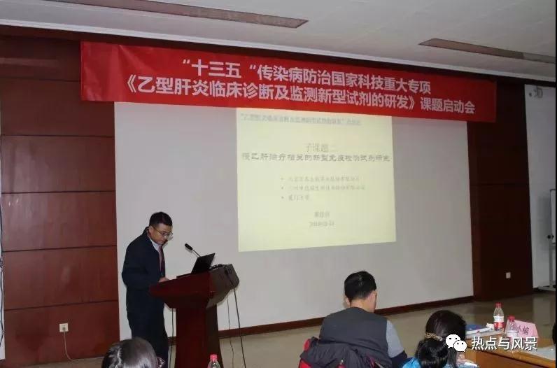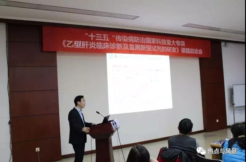 2018年1月13日,由北京熱景生物技術(shù)股份有限公司、北京大學(xué)魯鳳民教授主持的傳染病重大專項(xiàng)“十三五”課題《乙型肝炎臨床診斷及監(jiān)測新型試劑的研發(fā)》項(xiàng)目啟動會在北京大學(xué)醫(yī)學(xué)部會議中心成功召開。國家衛(wèi)生計(jì)生委醫(yī)藥衛(wèi)生科技發(fā)展研究中心賀曉慧副主任,科教司重大專項(xiàng)處韓娟娟主任科員,傳染病專項(xiàng)“十三五”總體組專家、中國醫(yī)學(xué)科學(xué)院/北京協(xié)和醫(yī)學(xué)院科技管理處處長王健偉教授,北京大學(xué)醫(yī)學(xué)部科研處副處長樊建軍教授,北京熱景生物技術(shù)股份有限公司林長青董事長出席了會議。來自北京大學(xué)第一醫(yī)院的王貴強(qiáng)教授、徐小元教授,中國人民解放軍第三〇二醫(yī)院趙景民教授、徐東平教授,首都醫(yī)科大學(xué)附屬北京佑安醫(yī)院鄭素軍教授,廈門大學(xué)公共衛(wèi)生學(xué)院葛勝祥教授等項(xiàng)目組成員60余人參加了會議。