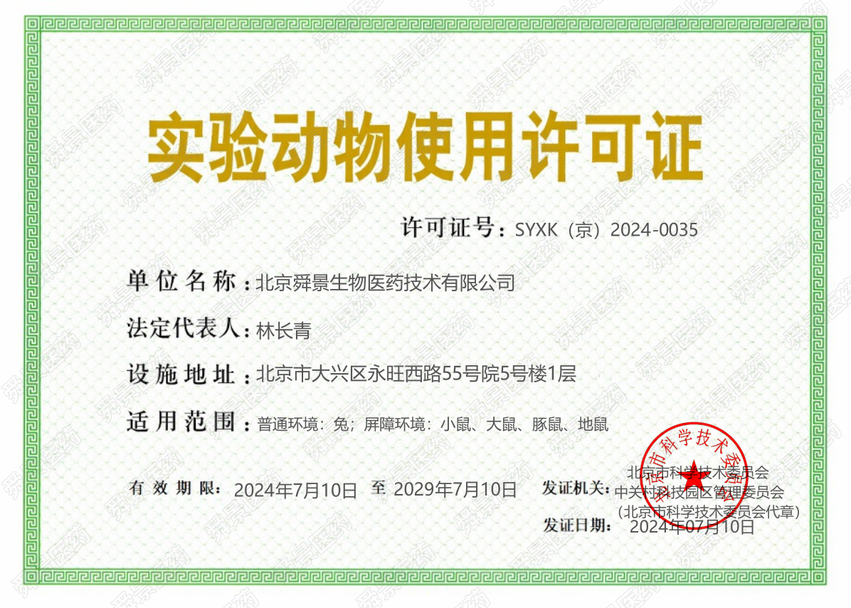 喜訊!舜景醫(yī)藥實驗動物管理中心獲頒“實驗動物使用許可證”