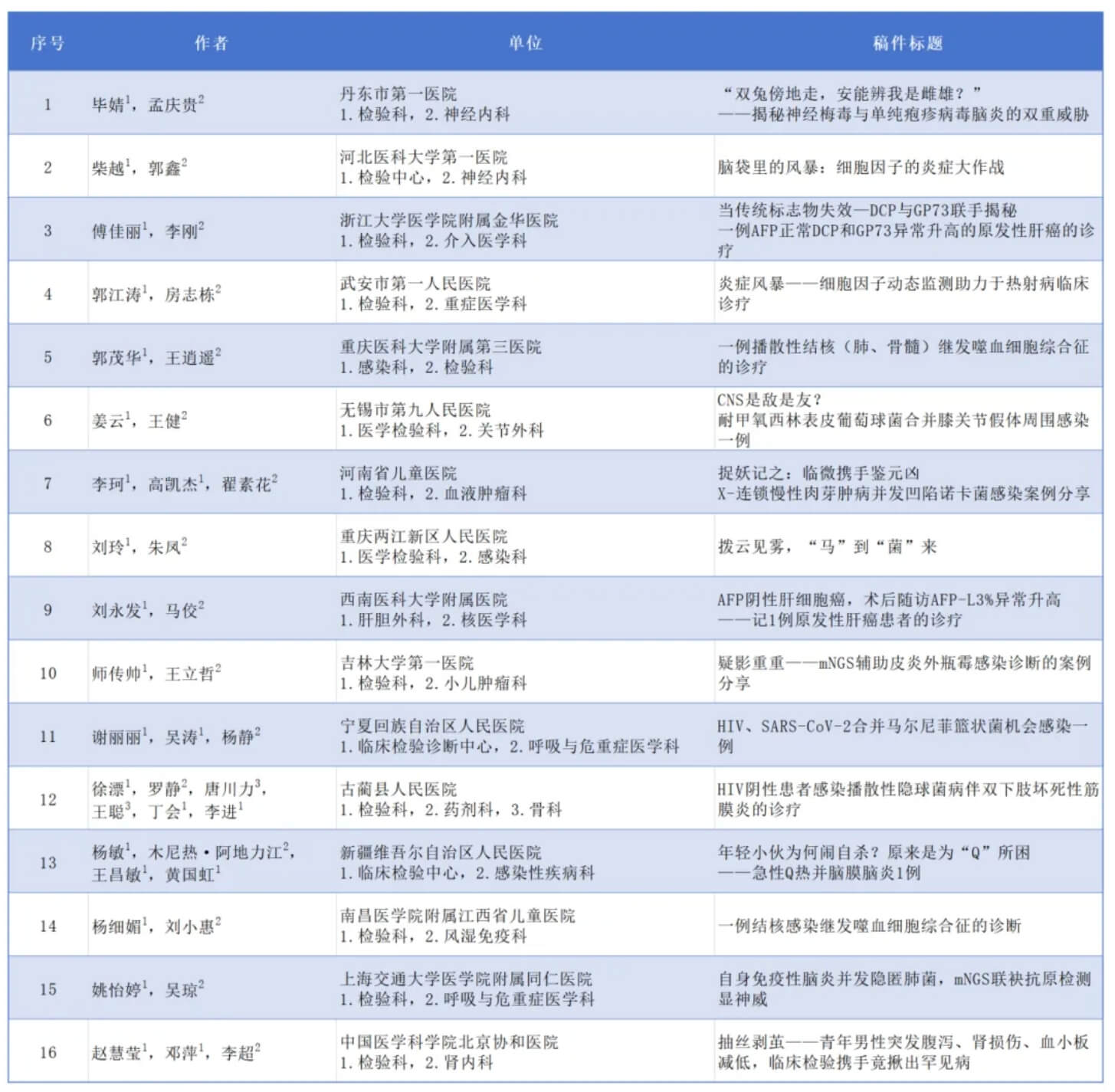 決賽名單公布 | 第四屆檢驗(yàn)與臨床(感染性疾?。┧季S案例展示(推廣賽)