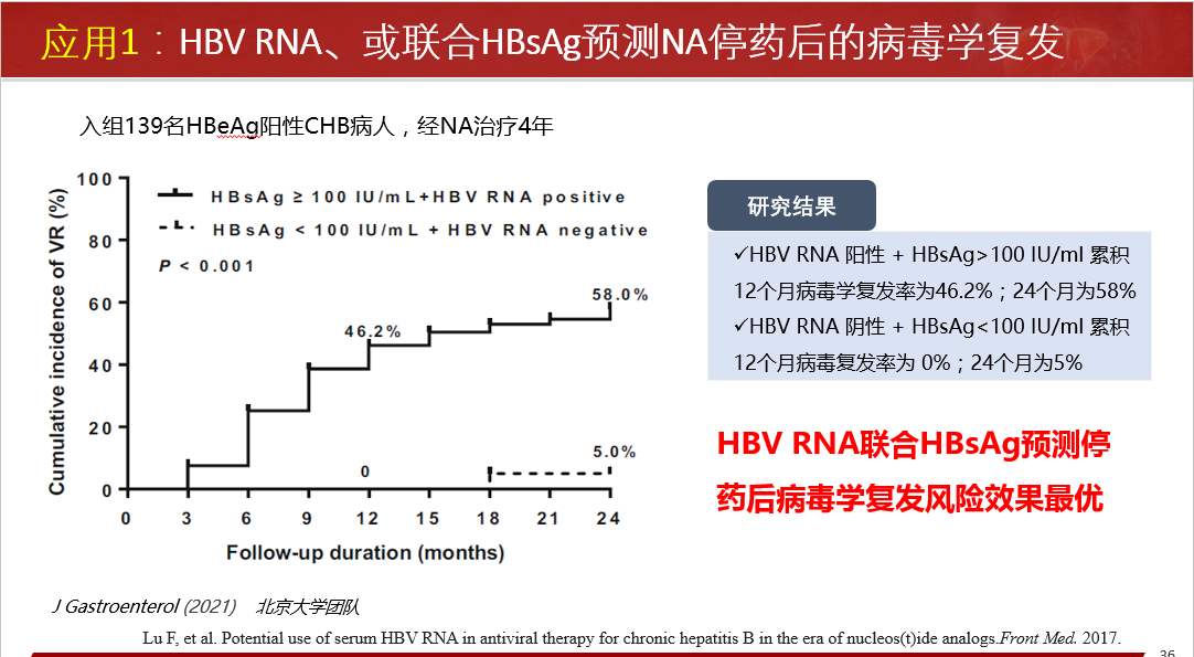 場(chǎng)景1--- HBV RNA、或聯(lián)合HBsAg預(yù)測(cè)NA停藥后的病毒學(xué)復(fù)發(fā)。