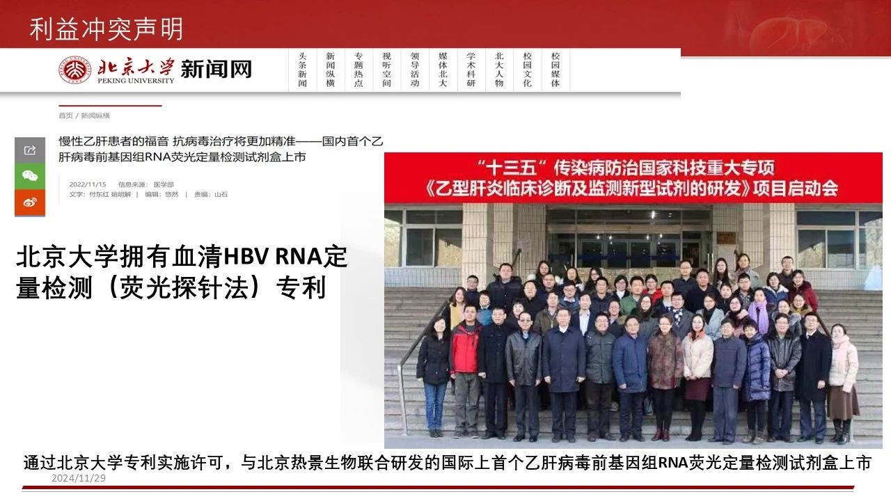 PS:北京大學(xué)擁有血清HBV RNA定量檢測(cè)(熒光探針?lè)ǎ@?,通過(guò)北京大學(xué)專利實(shí)施許可,與北京熱景生物聯(lián)合研發(fā)的國(guó)際上首個(gè)乙肝病毒前基因組RNA熒光定量檢測(cè)試劑盒已上市。