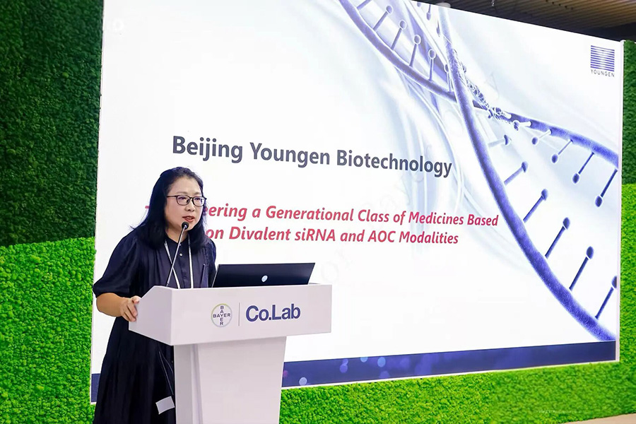 2025年9月8日,北京堯景基因生物技術(shù)有限公司(下稱“堯景基因”)應(yīng)邀參加拜耳Co.Lab全球生命科學(xué)共創(chuàng)平臺在華開幕一周年“1起·為創(chuàng)想喝彩”主題活動,共同探討中國創(chuàng)新藥的未來發(fā)展?jié)摿Γ苿痈嗤黄菩詣?chuàng)新成為應(yīng)對全球健康挑戰(zhàn)的中國解決方案。堯景基因首席科學(xué)顧問鐘輝教授分享全球小核酸行業(yè)的發(fā)展與競爭格局,展示了公司自主研發(fā)的心臟靶向遞送技術(shù)平臺及管線研發(fā)成果。