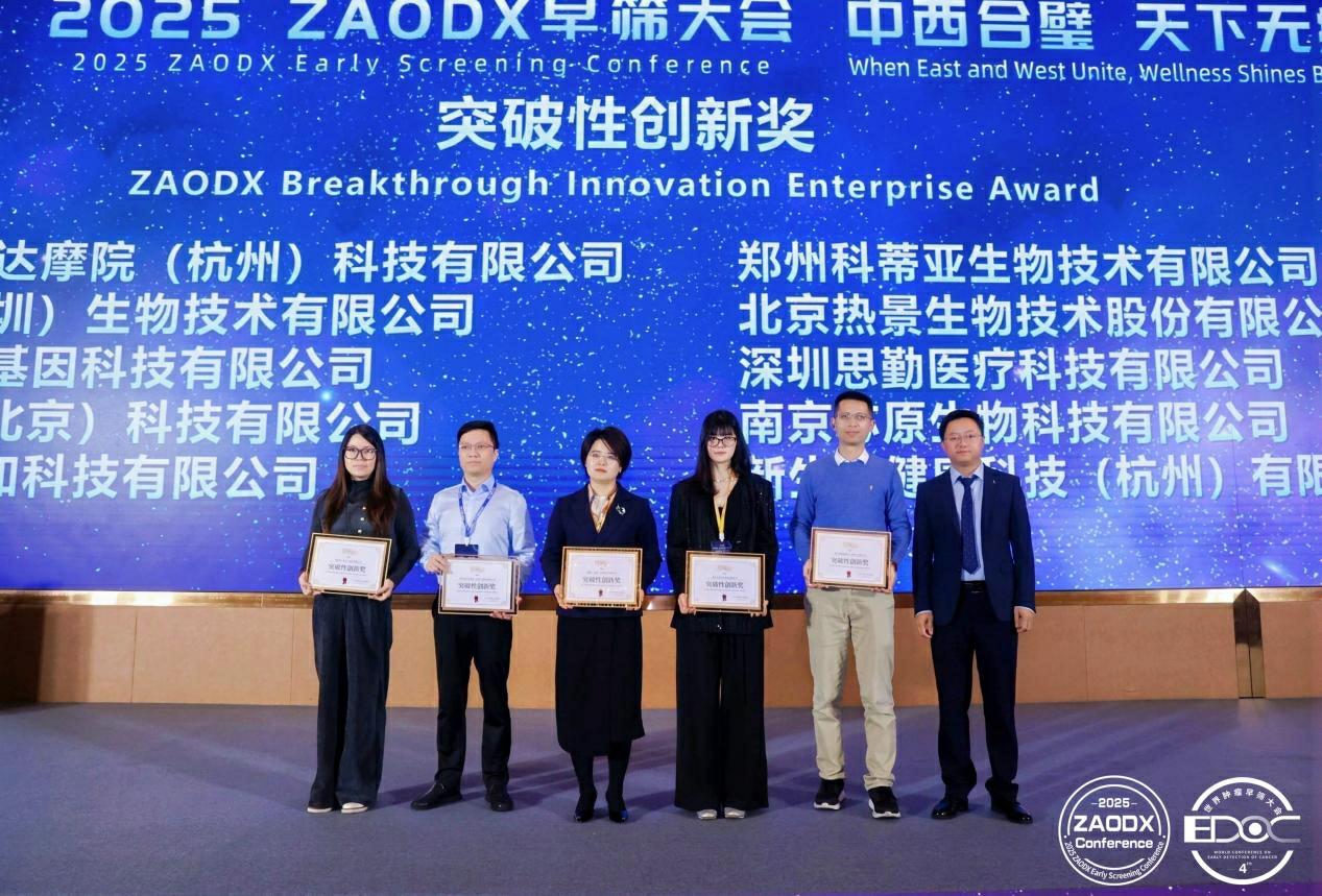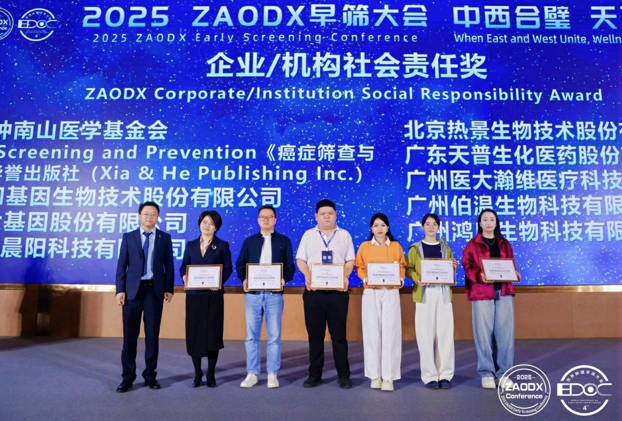 12月20日-21日,以“中西合璧,天下無疾”為主題的“2025 ZAODX早篩大會”在廣州舉辦。會議期間,主辦方公布了第四屆“金篩獎”榜單,并舉行線下頒獎儀式。熱景生物憑借“C-GALAD肝癌風(fēng)險(xiǎn)預(yù)警模型”的創(chuàng)新性以及“肝癌早篩健康中國行”公益項(xiàng)目的巨大社會和經(jīng)濟(jì)價(jià)值分別榮獲“突破性創(chuàng)新獎”與“企業(yè)/機(jī)構(gòu)社會責(zé)任獎”。一次斬獲兩項(xiàng)行業(yè)榮譽(yù),體現(xiàn)了業(yè)界對公司在肝癌早篩領(lǐng)域技術(shù)創(chuàng)新與社會貢獻(xiàn)的充分肯定。
