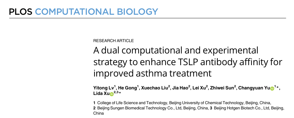 近日,熱景生物“X-Gen AI新藥發(fā)現(xiàn)與設計研究中心”在生物信息學與計算生物學領域高影響力經典期刊PLOS Computational Biology上發(fā)表了題為“A Dual Computational and Experimental Strategy to Enhance TSLP Antibody Affinity for Improved Asthma Treatment” 的論文(doi: 10.1371/journal.pcbi.1011984)。“X-Gen AI新藥發(fā)現(xiàn)與設計研究中心”聯(lián)合培養(yǎng)博士生呂祎彤為論文第一作者,許立達研究員為論文主要通訊作者,北京化工大學喻長遠教授為共同通訊作者,舜景生物孫志偉總經理為該套流程的搭建提供了極其重要的指導。