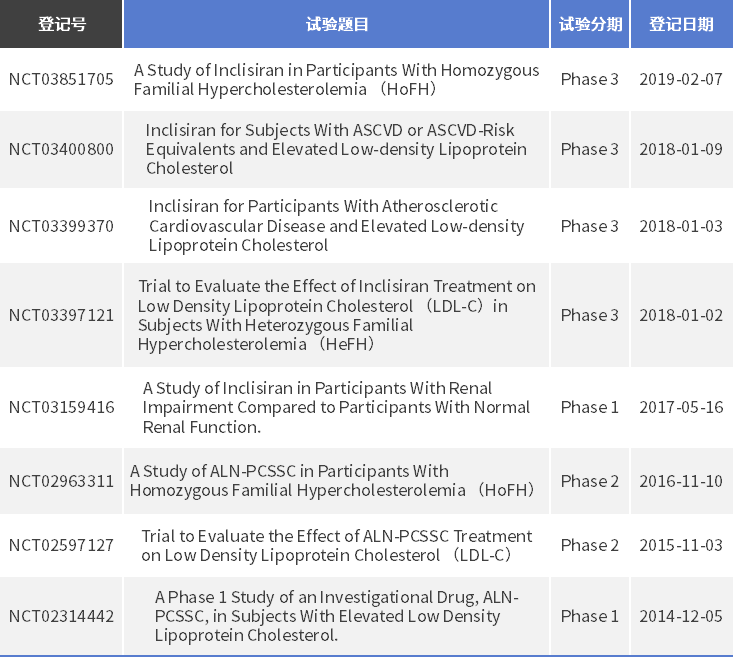 表4 leqvio已完成的臨床試驗(yàn)信息