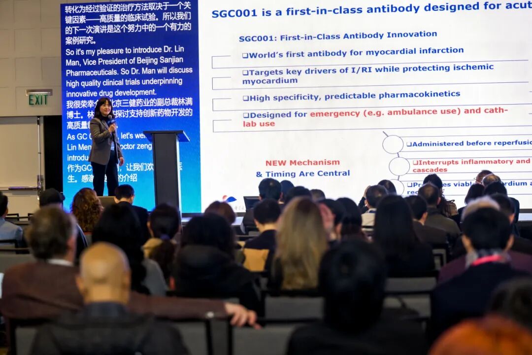 當(dāng)?shù)貢r間 2026 年 1 月 12 日,全球生物醫(yī)藥領(lǐng)域的 “風(fēng)向標(biāo)”—— 第 44 屆摩根大通醫(yī)療健康大會(J.P. Morgan Healthcare Conference)在美國舊金山盛大召開。舜景醫(yī)藥副總經(jīng)理孟玲博士應(yīng)邀出席大會并重磅宣布:全球首創(chuàng)針對急性心肌梗死的抗體治療藥物 SGC001 正式啟動Ⅱ期臨床試驗。該藥物憑借突破性的治療機(jī)制、精準(zhǔn)的臨床設(shè)計以及Ⅰ期試驗中展現(xiàn)的優(yōu)異數(shù)據(jù),一經(jīng)公布便引發(fā)與會投資者與行業(yè)同仁的關(guān)注與討論。